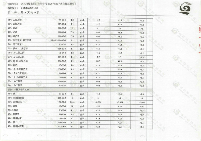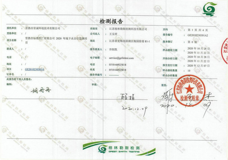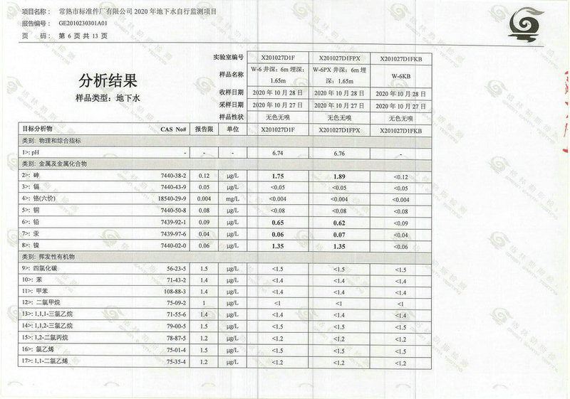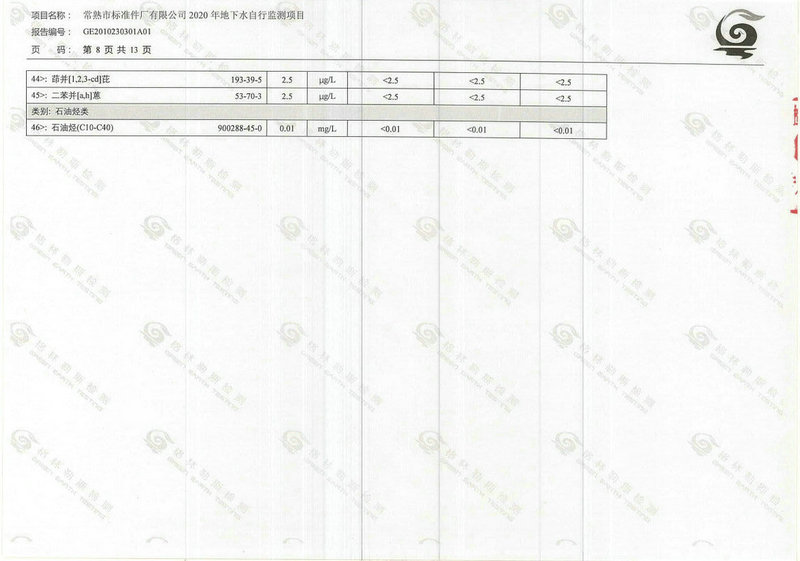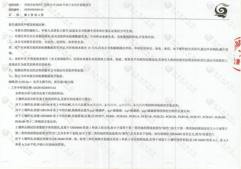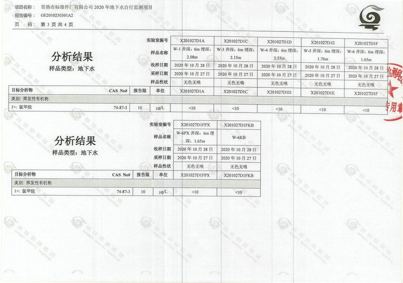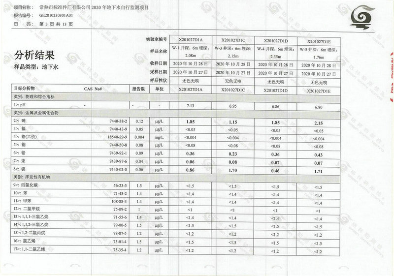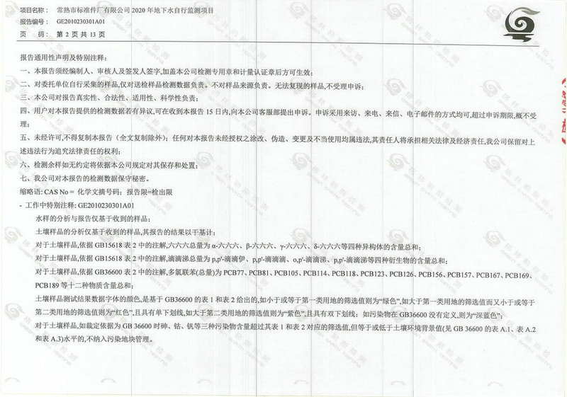 常熟市標準件廠有限公司2020年地下水自行監(jiān)測報告