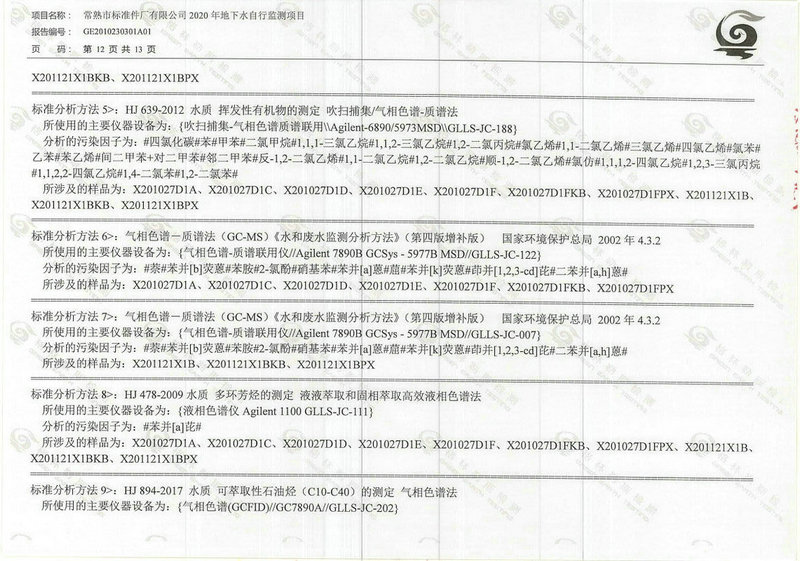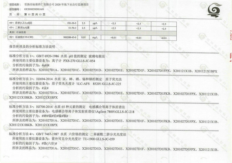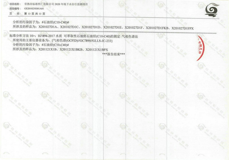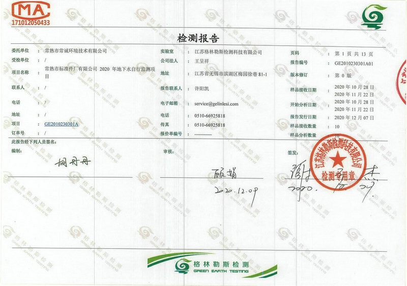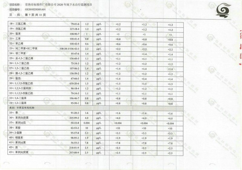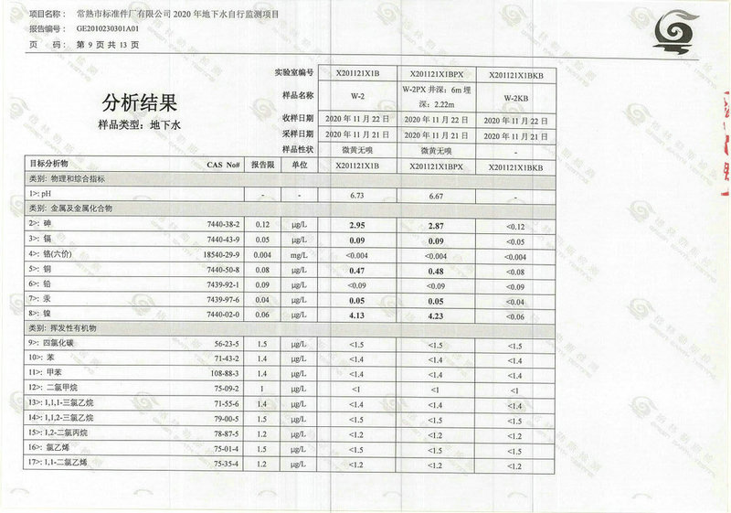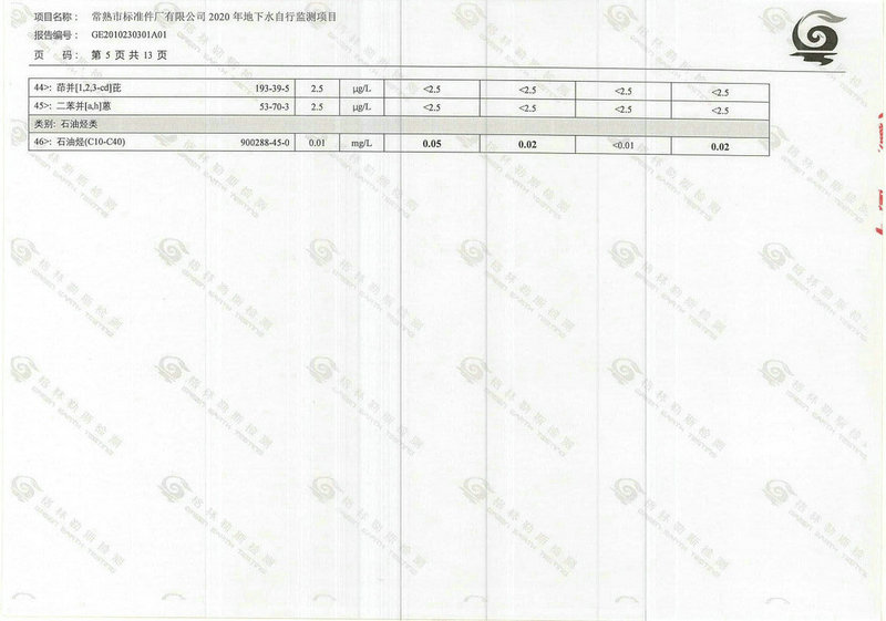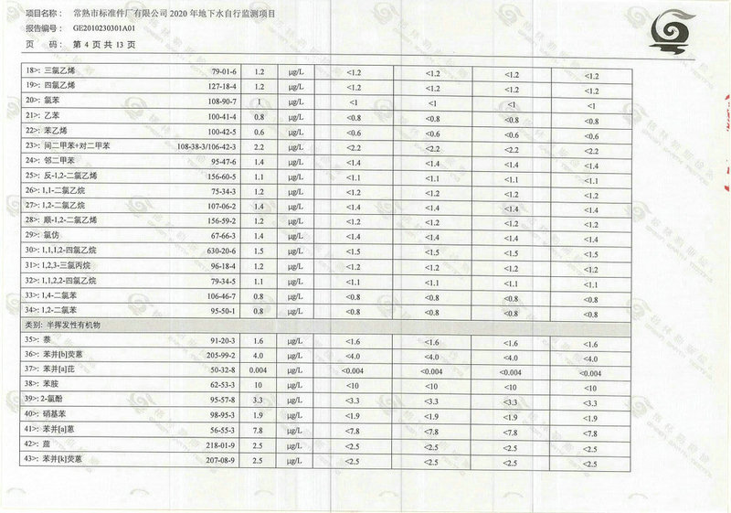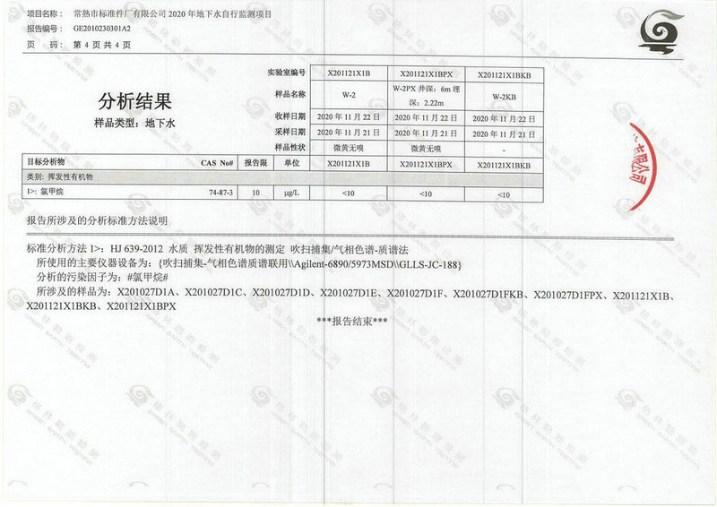 常熟市標準件廠有限公司2020年地下水自行監(jiān)測報告