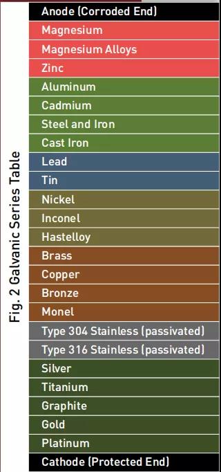 例如:與316型不銹鋼部件相結(jié)合的鋁零件,預(yù)計(jì)會(huì)比鋼和錫組成的部件遭受更多的原電池腐蝕效應(yīng)。
