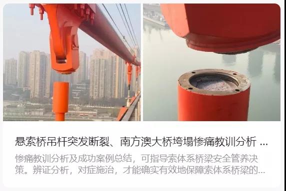 一、鵝公巖軌道橋上游LM2吊索叉耳螺桿在2022年1月18日上午8:48分突發(fā)斷裂,導(dǎo)致LM2吊索退出工作,發(fā)現(xiàn)后及時(shí)停止了橋梁運(yùn)營(yíng)。從初步分析看,LM2吊索叉耳螺桿斷裂可能與初始缺陷、制造、安裝誤差等因素有關(guān)。二、根據(jù)設(shè)計(jì)單位檢算,現(xiàn)狀橋梁技術(shù)狀態(tài)仍滿足列車有條件的運(yùn)行要求。橋梁健康監(jiān)測(cè)單位采集的吊索叉耳螺桿斷裂前后相關(guān)數(shù)據(jù)也在理論檢算結(jié)果范圍內(nèi)。三、在對(duì)上下游MO、LM、LM3吊索系統(tǒng)進(jìn)行檢測(cè)評(píng)估無(wú)異常的情況下,且在LM2處設(shè)置臨時(shí)吊桿,并采取限速及單列車過(guò)橋的措施同意開放交通。四、在處治完成之前加大監(jiān)測(cè)頻率并增加必要的監(jiān)測(cè)點(diǎn)。五、在恢復(fù)開通的同時(shí)對(duì)其他吊索系統(tǒng)的狀態(tài)進(jìn)行全面檢查評(píng)估。