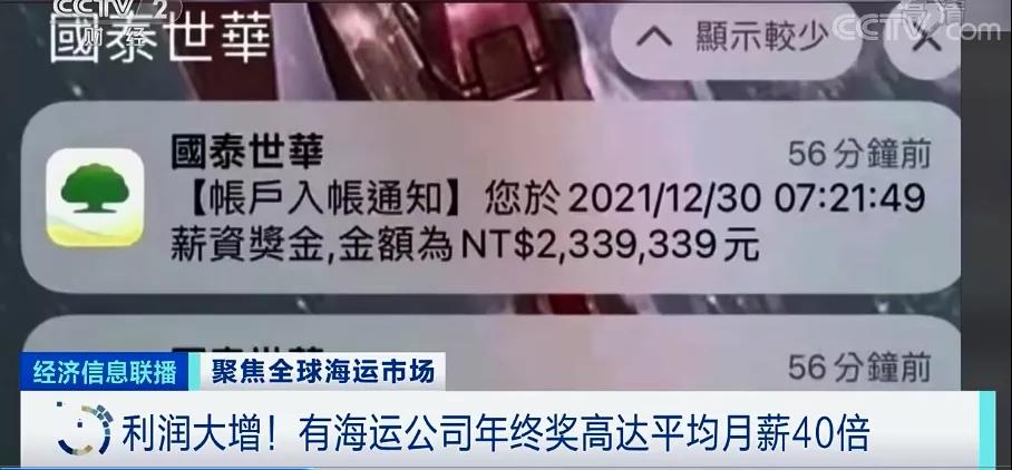近期,臺灣地區(qū)最大航運公司長榮海運向員工發(fā)放年終獎,據(jù)當(dāng)?shù)孛襟w報道,獎金額度平均高達月薪的40倍。