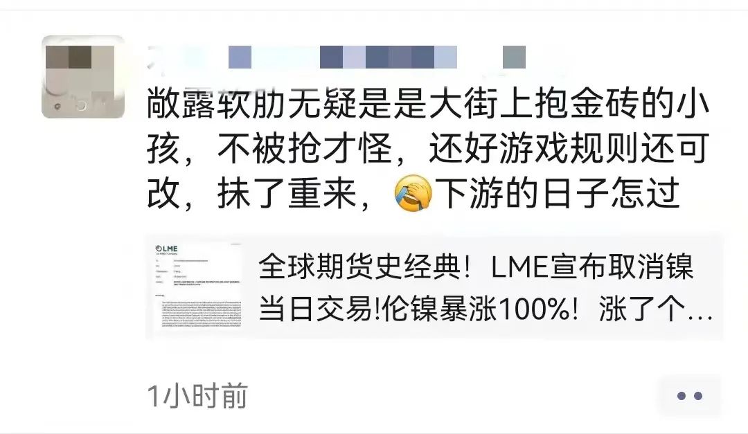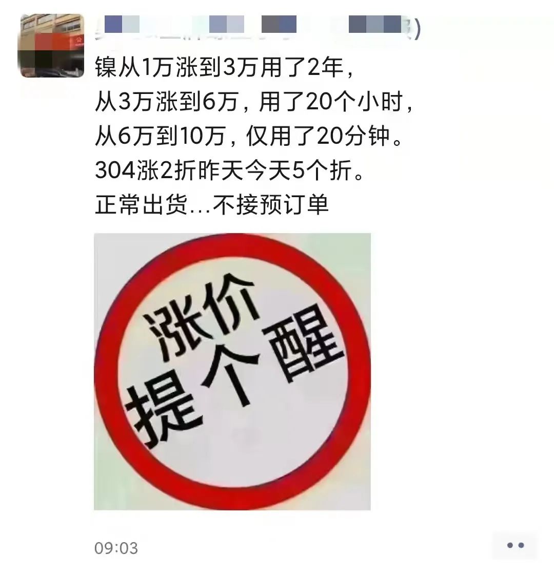 就在3月8日,上海期貨交易所發(fā)布風險提示稱,“近期國際形勢復雜多變,境外期貨市場鎳價格出現(xiàn)劇烈波動。我所將視市場情況依規(guī)采取進一步措施。請會員單位和投資者做好風險防范工作,理性投資,共同維護市場平穩(wěn)運行?!?/p>