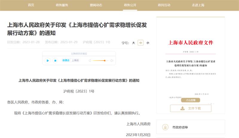 近日,上海市人民政府印發(fā)《上海市提信心擴(kuò)需求穩(wěn)增長促發(fā)展行動方案》,提出要抓牢高質(zhì)量發(fā)展的首要任務(wù),大力提振市場預(yù)期和信心,以新氣象新作為推動高質(zhì)量發(fā)展取得新成效。