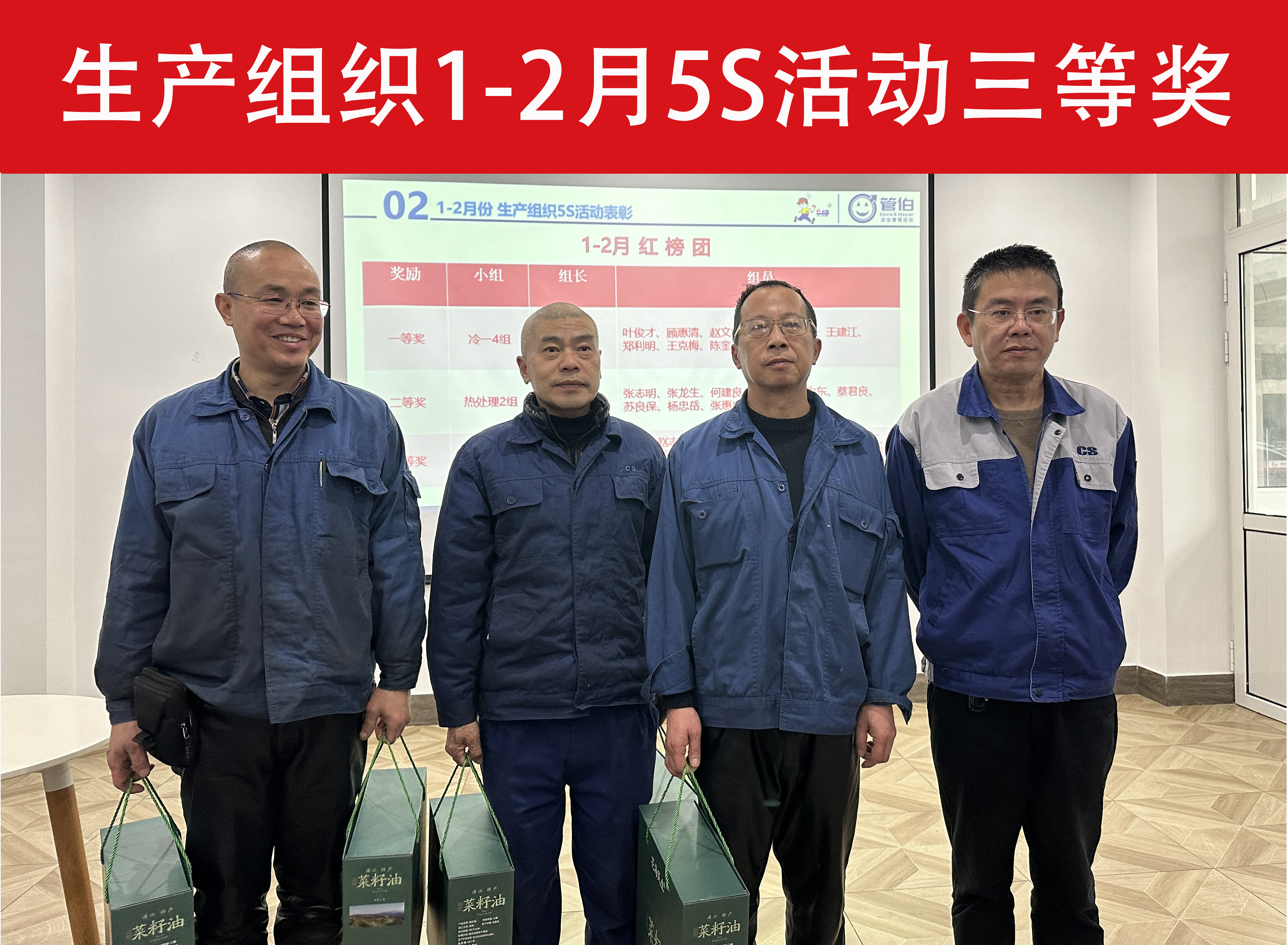 董事長(zhǎng)蔣永峰頒發(fā)生產(chǎn)組織1-2月5S活動(dòng)一等獎(jiǎng)