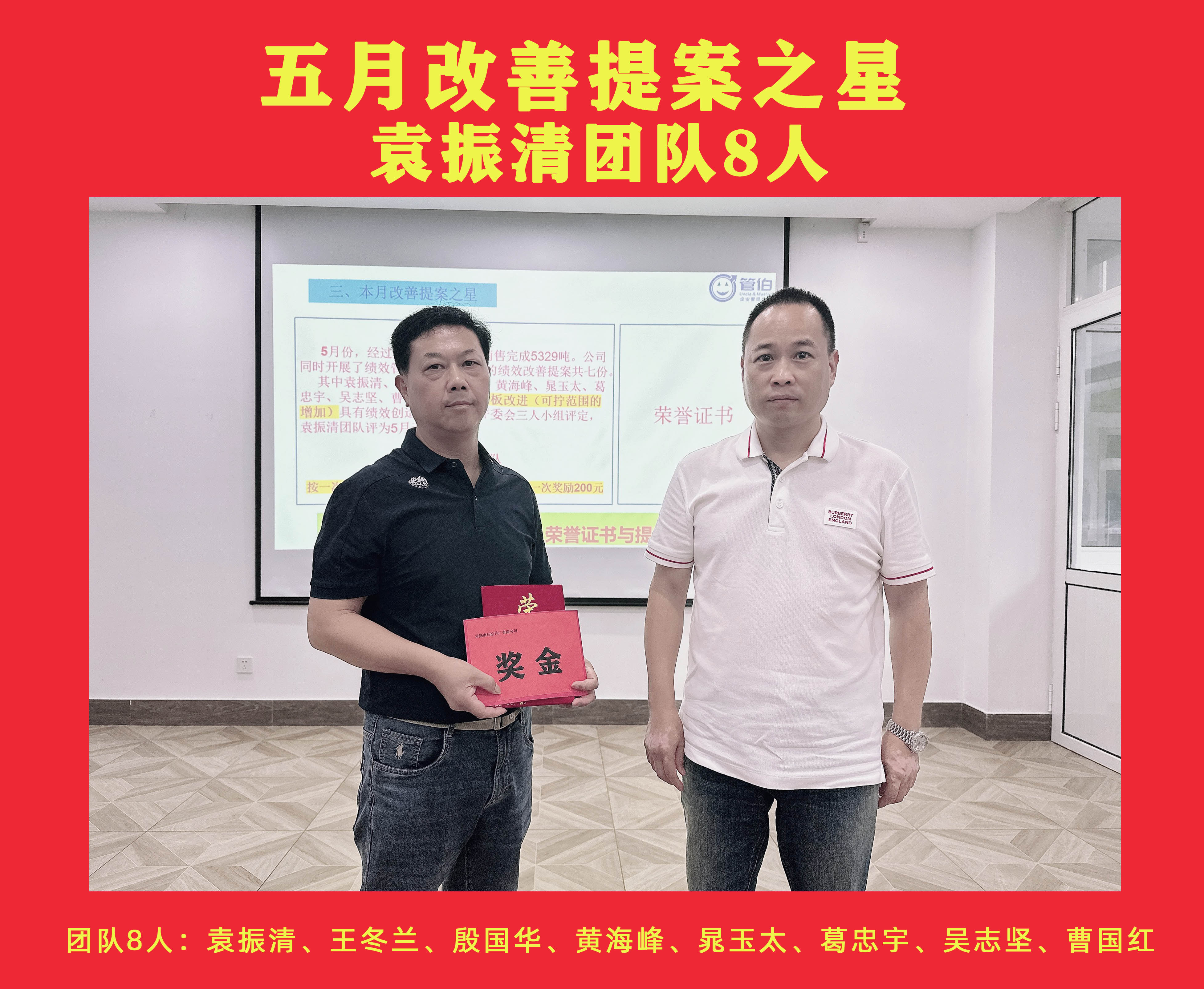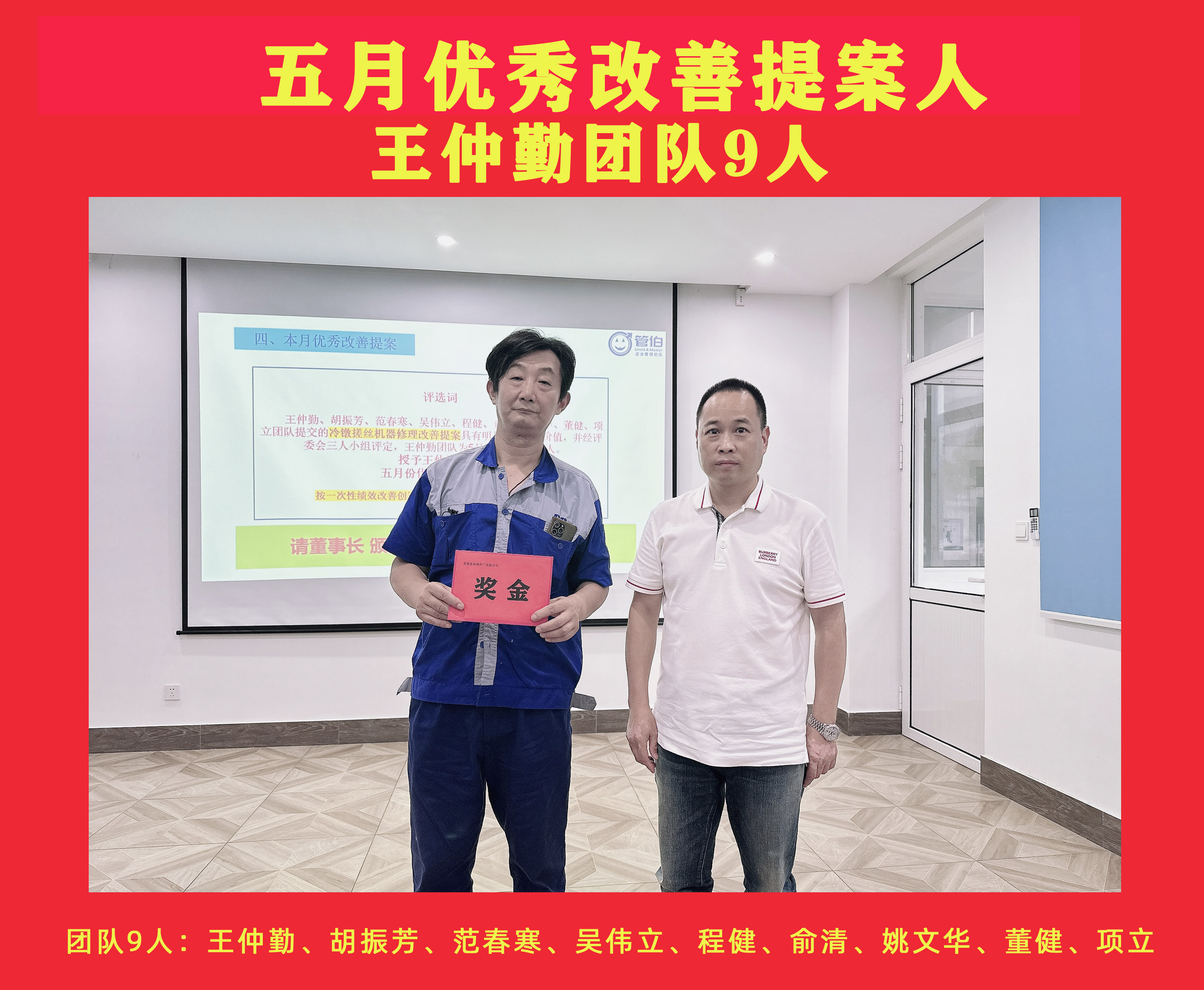 本次會議公布了5月份公司績效完成情況、副總級&經(jīng)理級&主管級人員的績效得分、5月份績效改善提案情況。經(jīng)評定,冷二車間袁振清團(tuán)隊獲得“五月改善提案之星”榮譽稱號。王仲勤團(tuán)隊獲得“五月優(yōu)秀改善提案人”榮譽稱號。